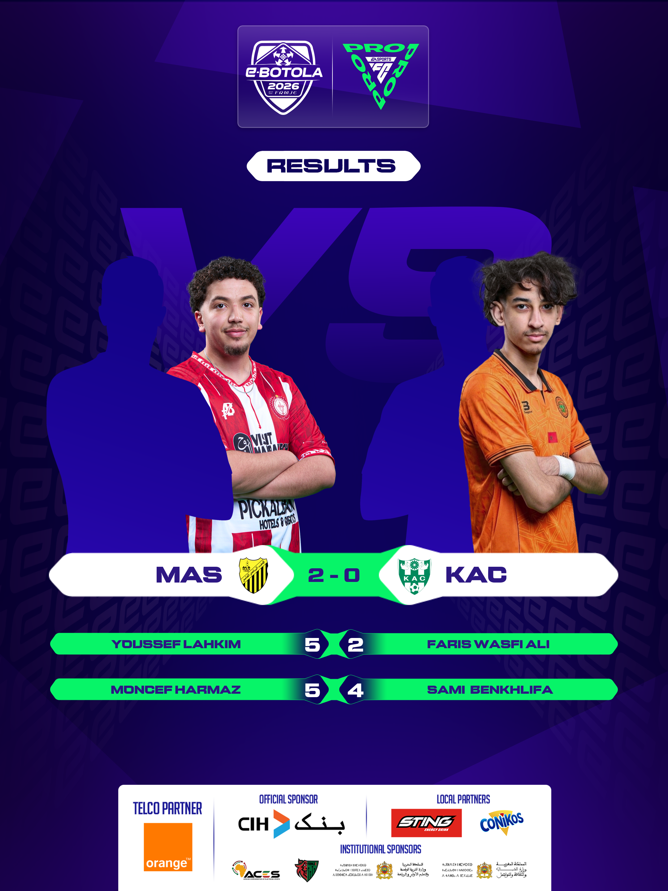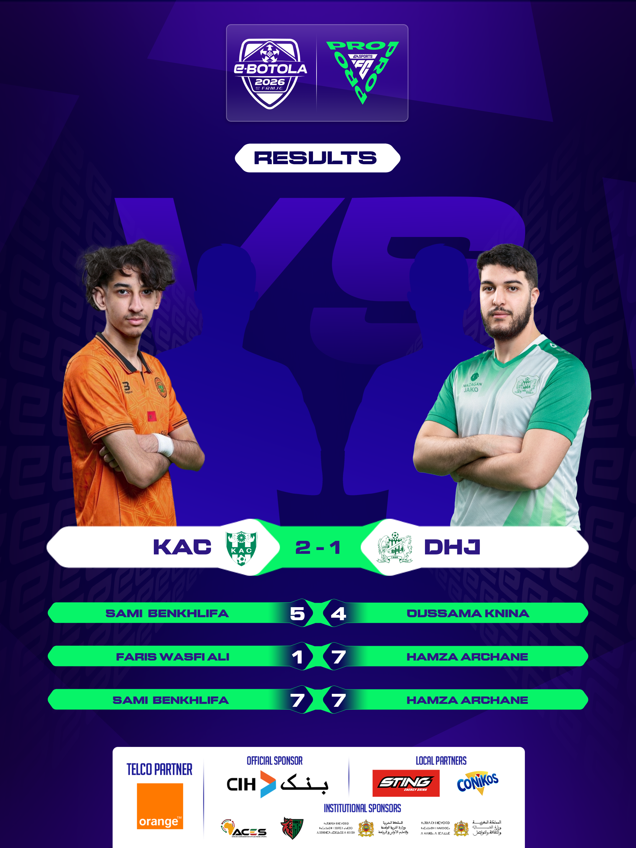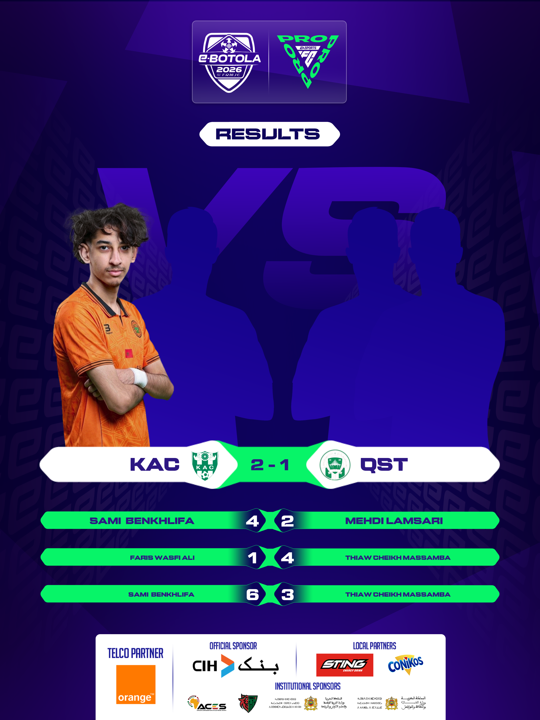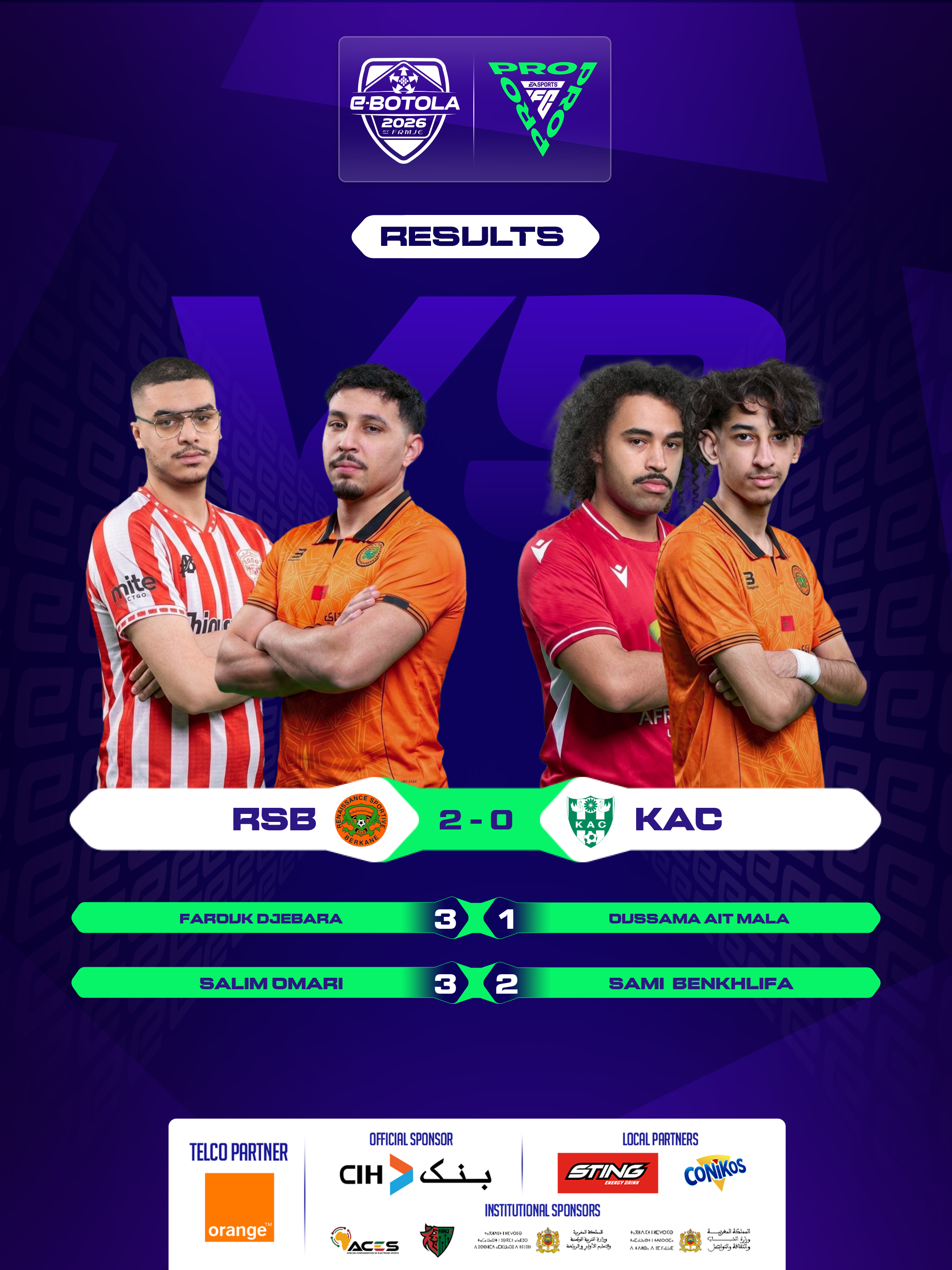 | 2026-02-27 20:39 | Group A | RSB (2) | KAC (0) | Round 1 | completed | |
