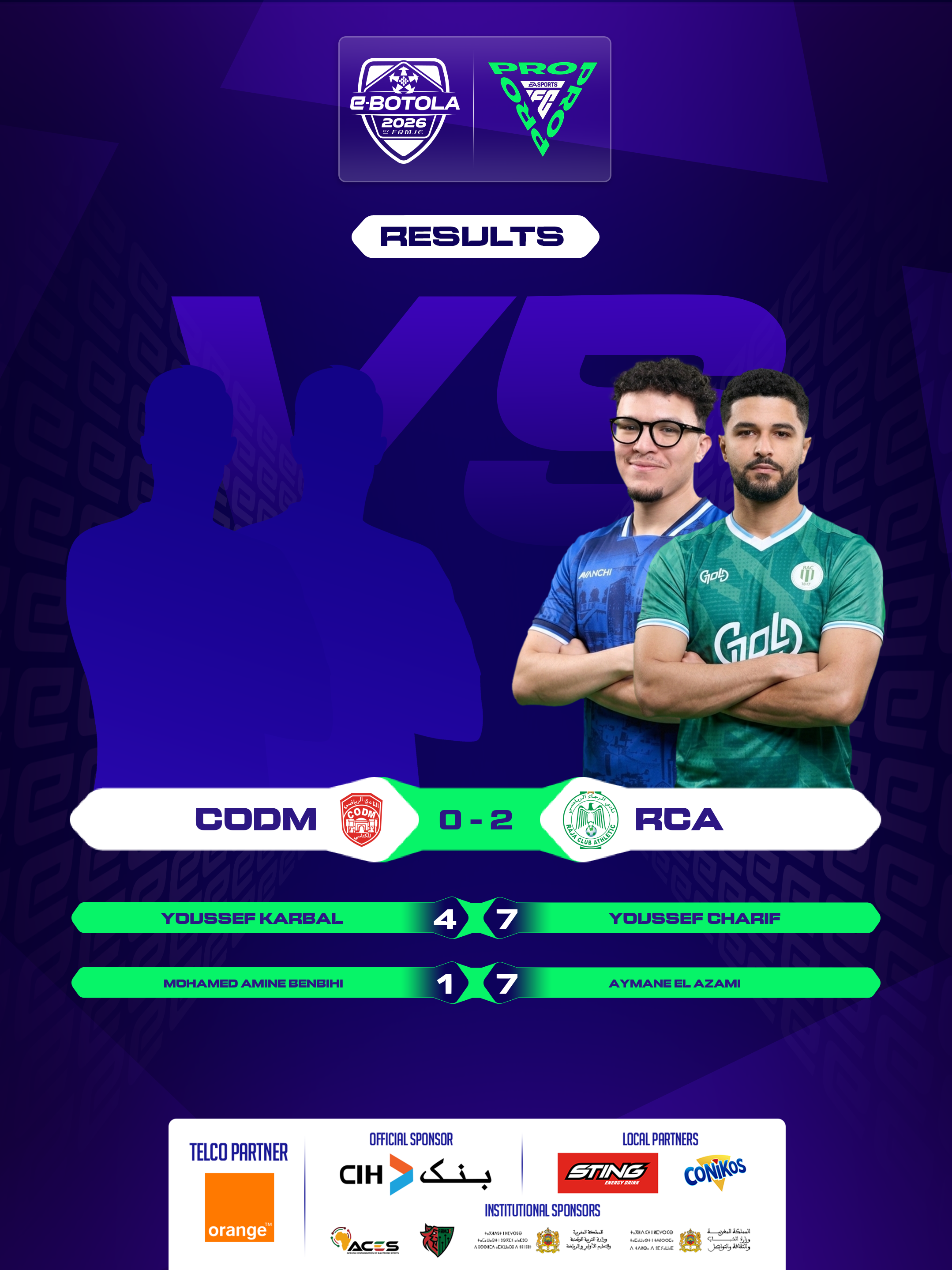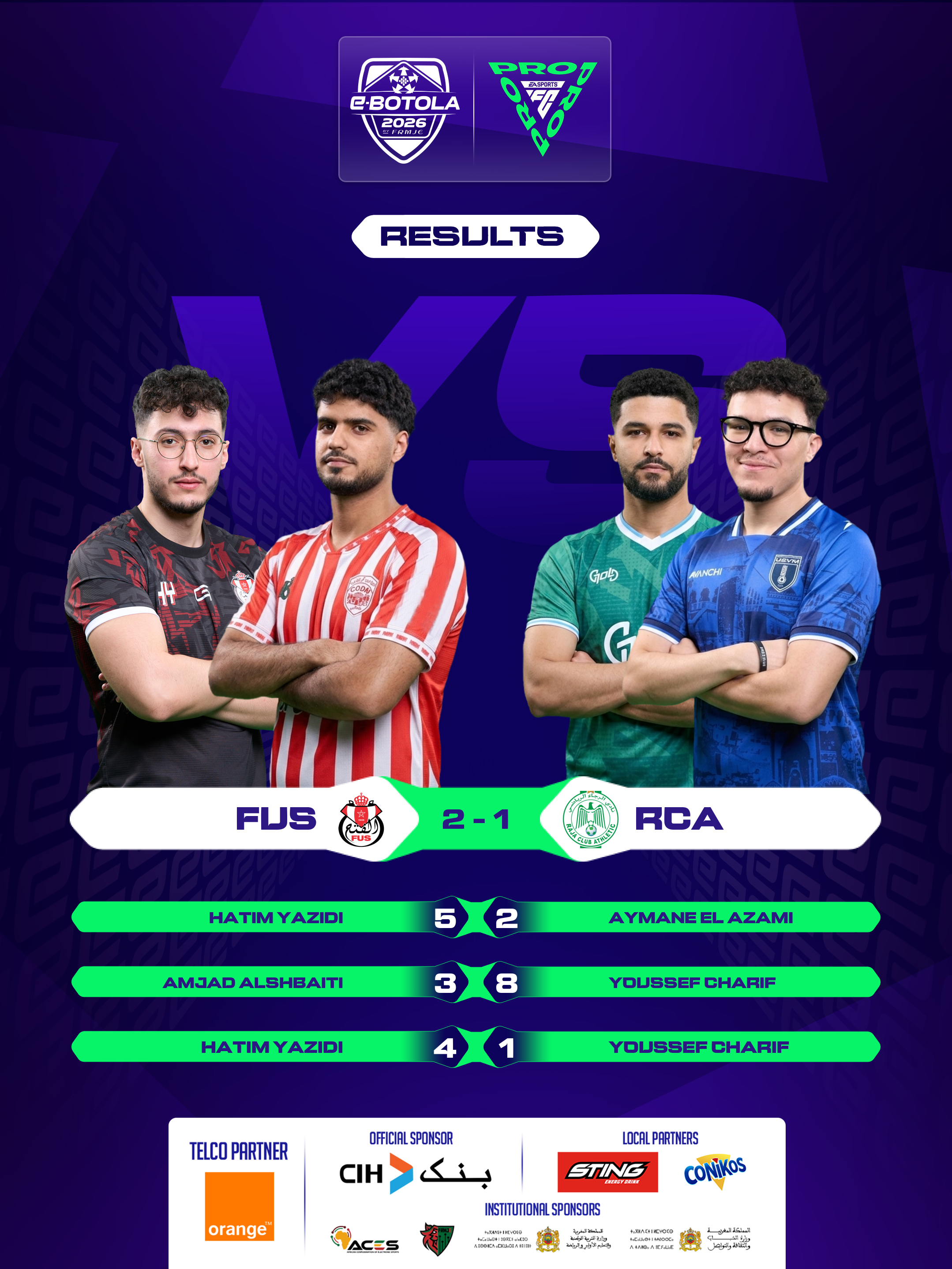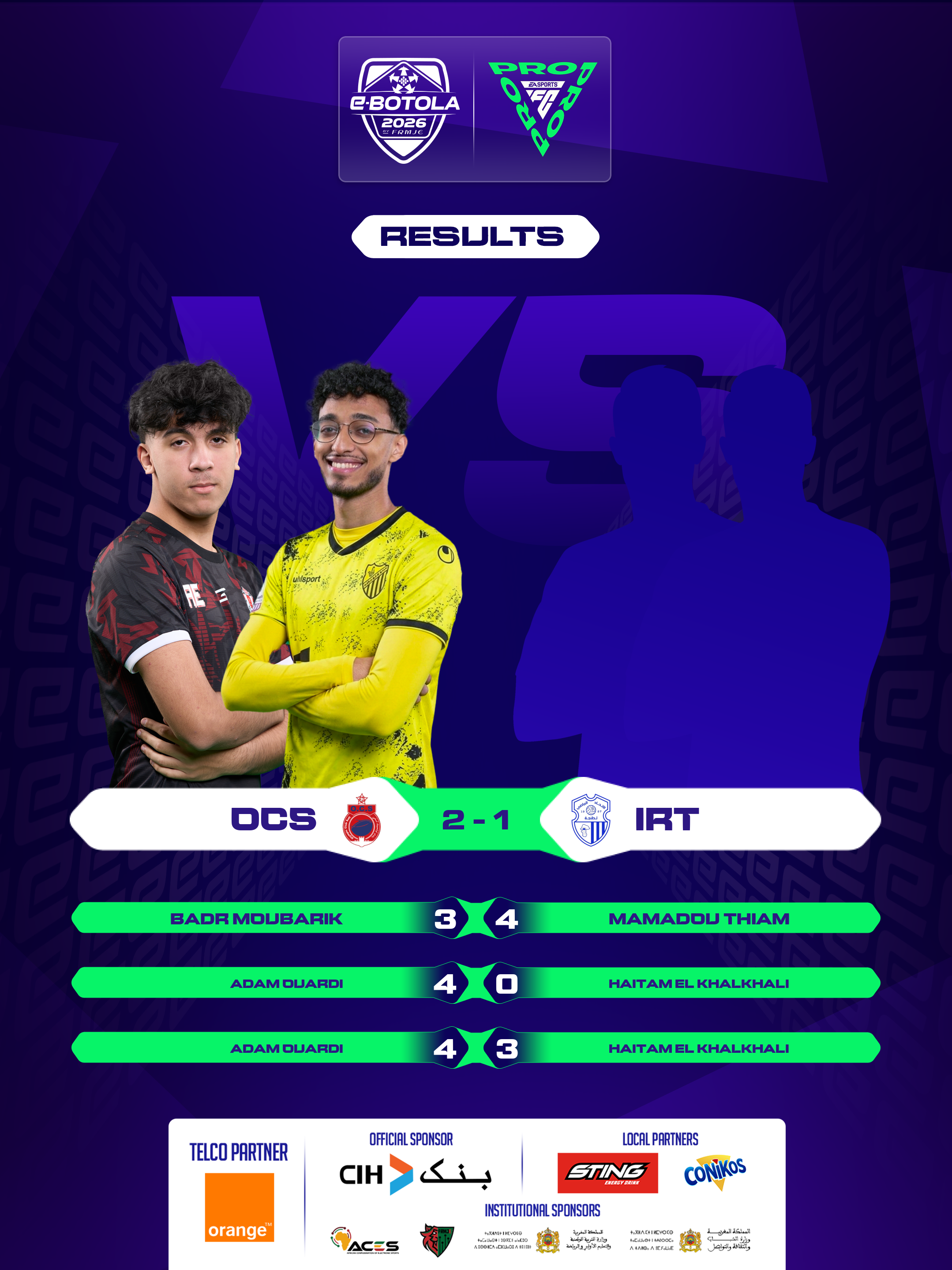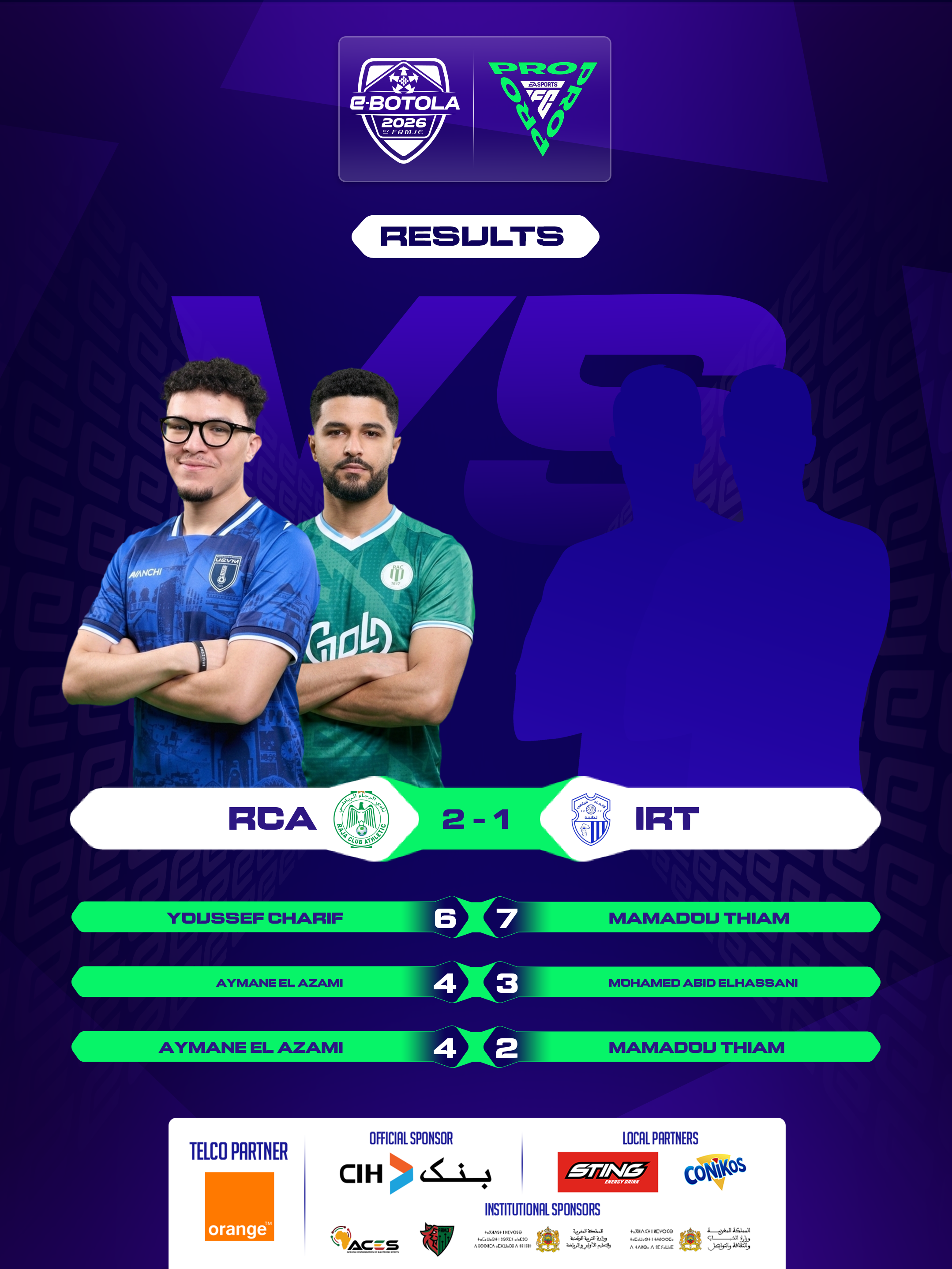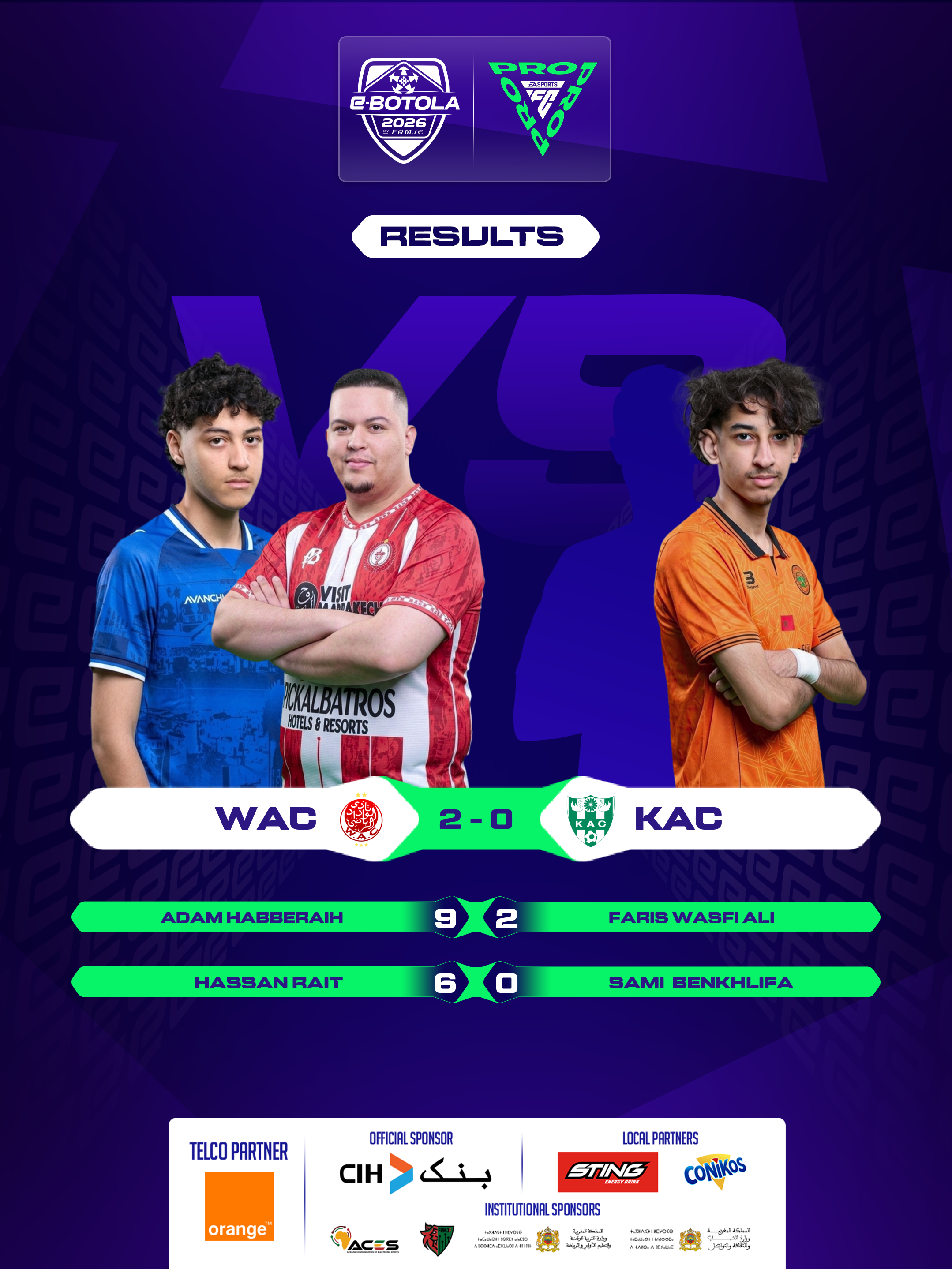 | 2026-02-27 20:39 | Group A | RSB (2) | KAC (0) | Round 1 | completed | |