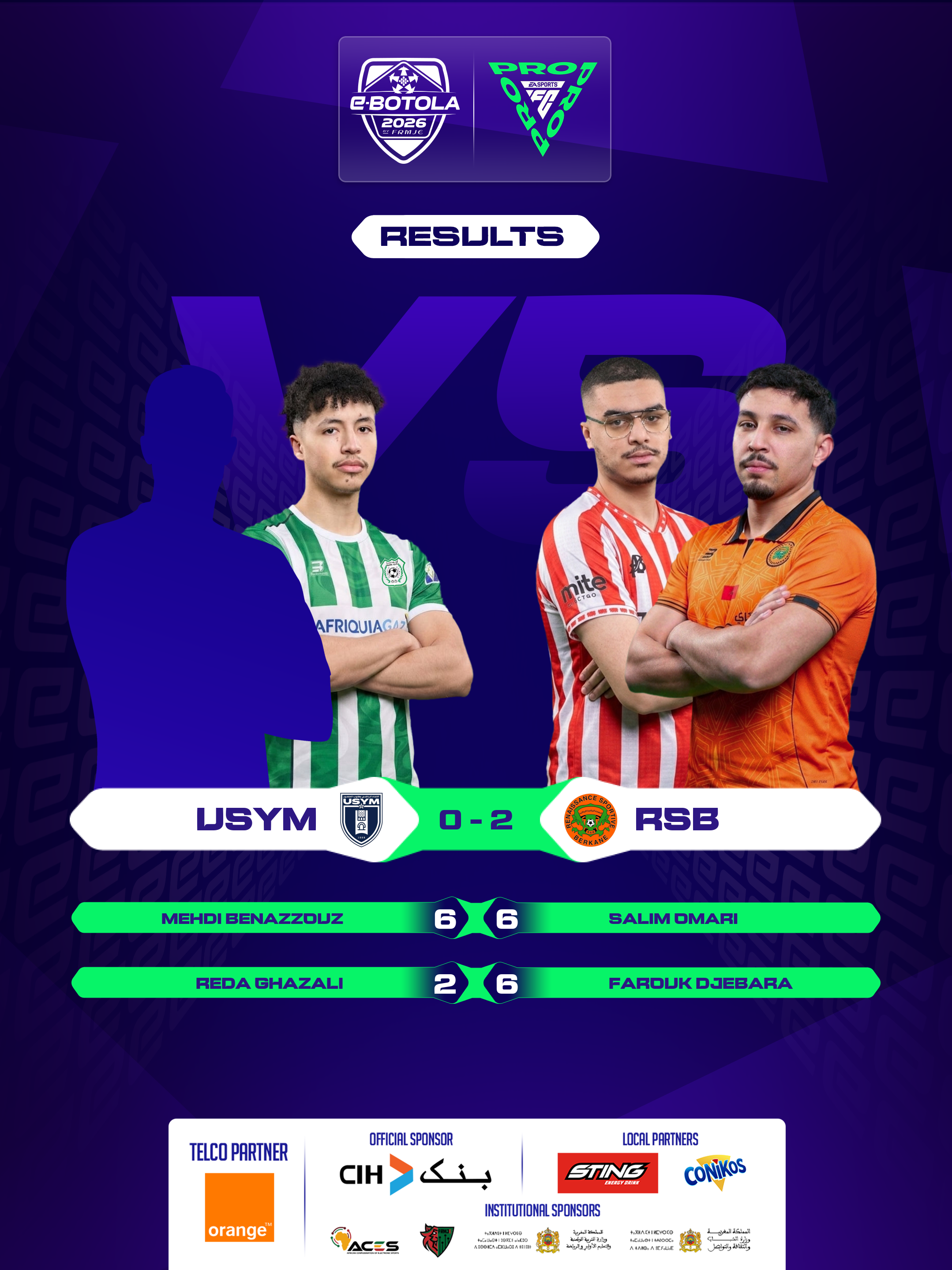 | 2026-02-27 20:39 | Group A | USYM (0) | RSB (2) | Round 2 | completed | |