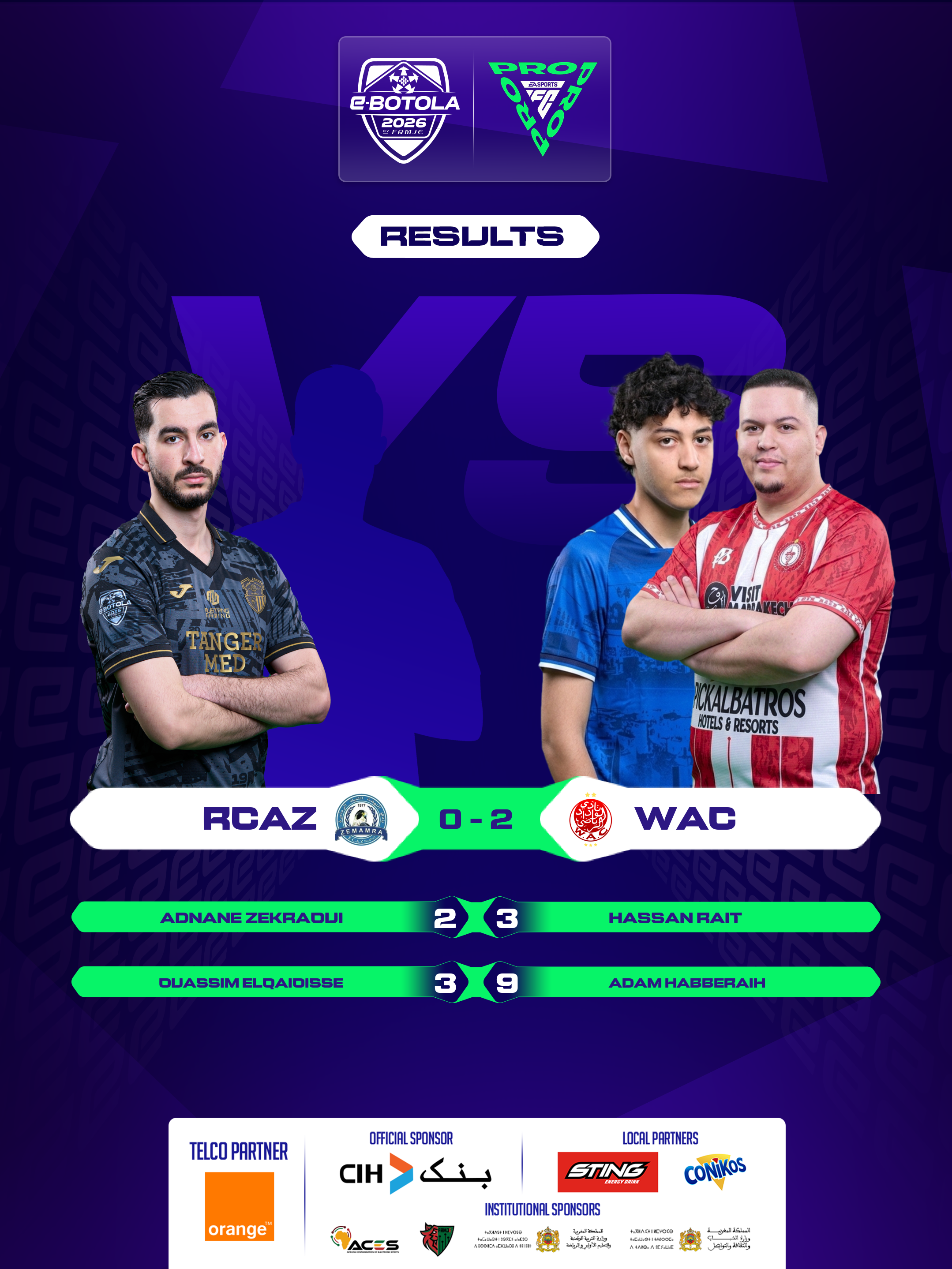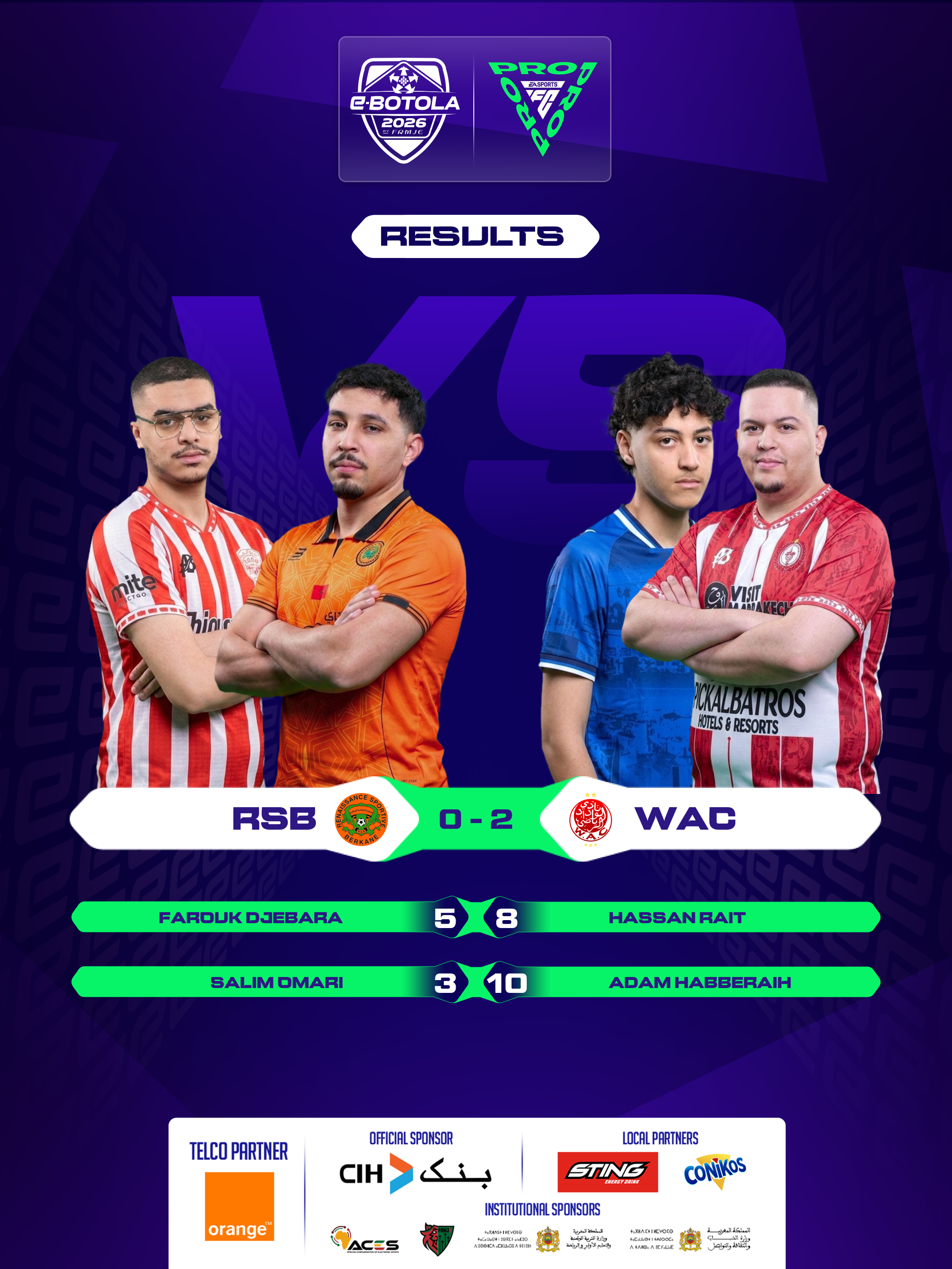 | 2026-02-27 20:39 | Group A | RSB (0) | WAC (2) | Round 4 | completed | |