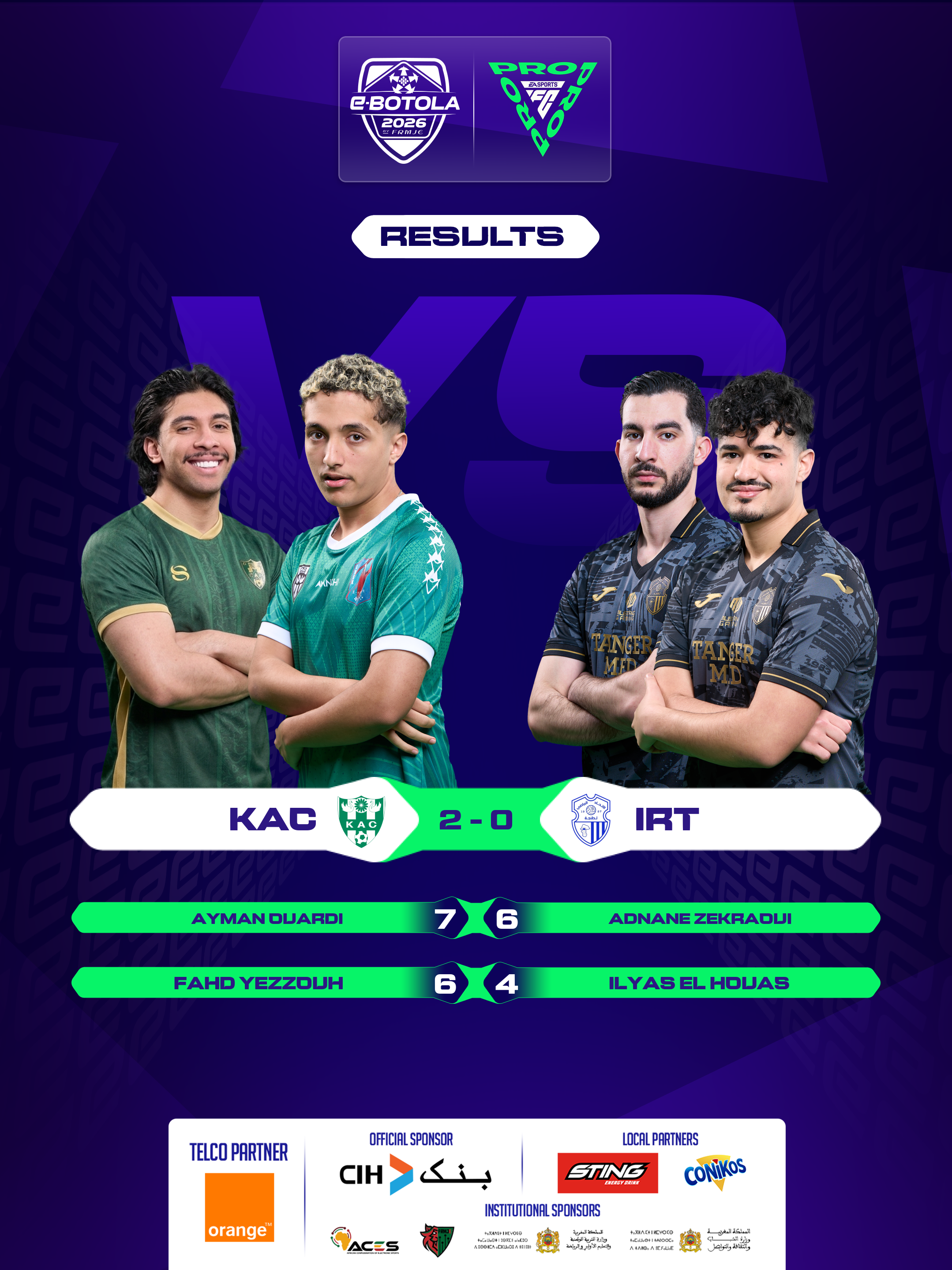 | 2026-03-07 22:00 | Group B | KAC (2) | IRT (0) | Round 1 | completed | |